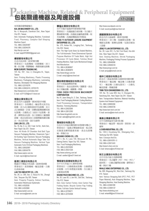 TEL 886-2-22318276 營業項目:食品包裝材料/裁斷器 、 食品 用) 、 輸送機(自動包裝用)、自動化