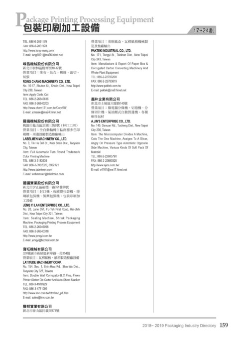 2018- 2019 Packaging Industry Directory 159