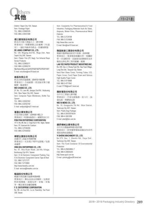 2018- 2019 Packaging Industry Directory 289